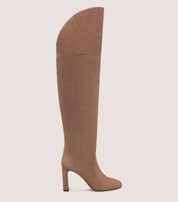 Boot Over-the-knee Slim block heel Almond toe Pull-on Structured shaft