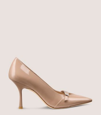 The GEORGIE PUMP stands out with a cutout vamp detail and a vamp strap adorned with a polished angular buckle. It is crafted in Spain with a sculptural 85-mm stiletto heel and a sleek pointed toe.​