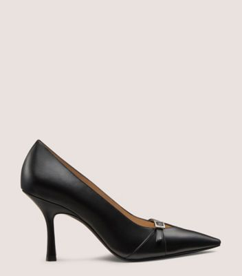 The GEORGIE PUMP stands out with a cutout vamp detail and a vamp strap adorned with a polished angular buckle. It is crafted in Spain with a sculptural 85-mm stiletto heel and a sleek pointed toe.​