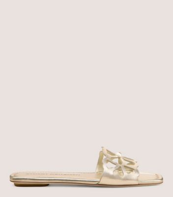 The JASMINE SLIDE delivers our refined take on the everyday flat sandal. Defined by an elegant floral cutout motif complete with a pearl detail, this square-toe slide makes an elevated addition to any warm-weather wardrobe.