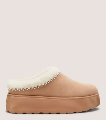 The NELLIE PEARL FLATFORM BOOTIE pairs elegant pearl embellishments and a luxe shearling lining with a laid-back ankle boot silhouette. Its 40-mm flatform gives it a stylish lift while remaining effortlessly comfortable. ​