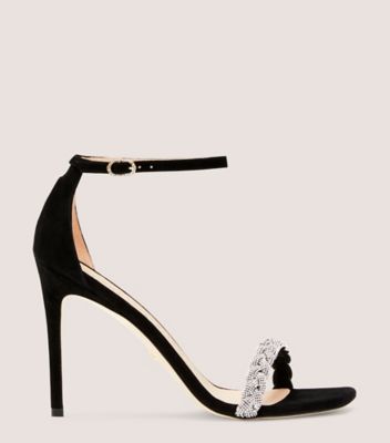 The NUDISTCURVE 100 HIGHSHINE SANDAL delivers a glamorous twist on our iconic NUDIST via our luxe HIGHSHINE braided detail with hand-applied crystal embellishments. Crafted on our NUDISTCURVE construction, it features a slightly-curved 100-mm stiletto heel for extra comfort and support, a curved back that showcases more of the foot and modern square toe. Make any day a special occasion in this sparkly standout.
