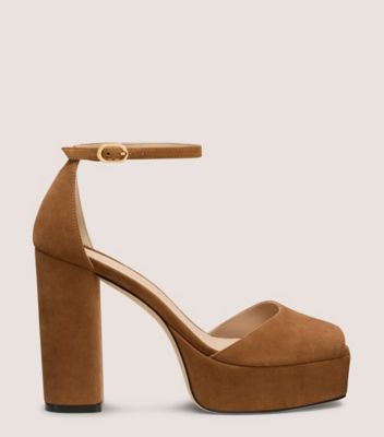The SABRINA ANKLE-STRAP PLATFORM is set on a 110-mm block heel, which is paired with a substantial platform for extra wearable support. Crafted by our team of artisans in Spain, this sandal features a high-coverage vamp design that gives the appearance of a peep-toe. It is finished with our signature keyhole detail on the back counter.