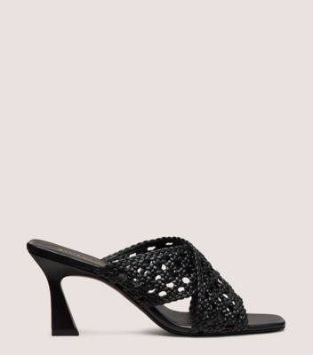 The THEA SLIDE 75 is a testament to the meticulous craftsmanship of our artisans in Spain. Crafted from intricately woven leather featuring an artful lattice design, this sandal is further elevated via a 75-mm angled heel and a sleek square toe.