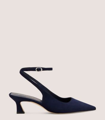 The VINNIE 50 STRAP PUMP is crafted with precision, featuring a sculptural angled 50-mm heel that is strategically placed to offer extra support. It is designed with a distinctive squared-off back counter and wraparound ankle straps.​